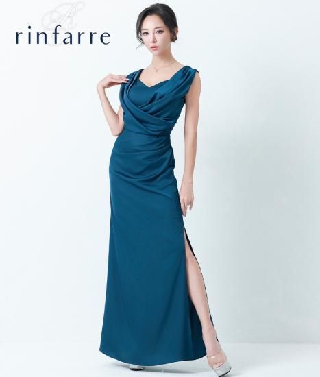 韓国製 | rinfarre |ストレッチサテン ドレープ ノースリーブ Vネック サイドスリット マーメイドライン ロングドレス ワンピース mybk