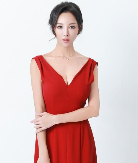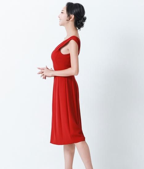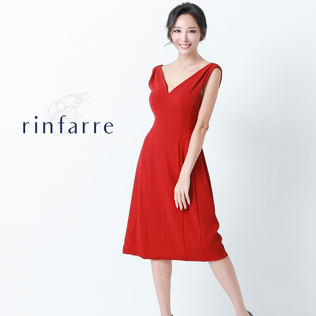 韓国製 | rinfarre | レッド シンプル ノースリーブ Aライン ミディアムドレス ワンピース myrd
