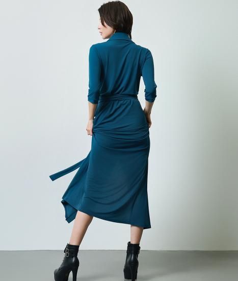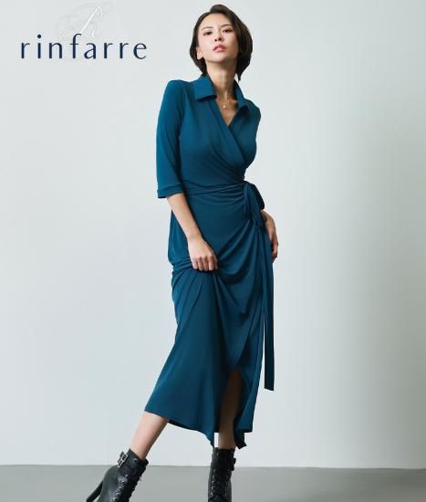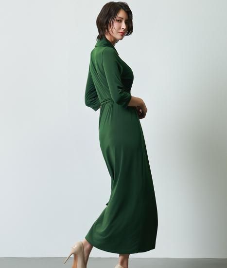 韓国製 | rinfarre | シンプル 無地 Aライン カシュクール 襟付き 五分袖 マキシ ミディアムドレス ワンピース
