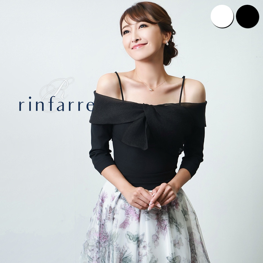 韓国製 | rinfarre | オフショルダー 肩紐 ホワイト ブラック ワンポイント リボンモチーフ 上品 ブラウス シンプル