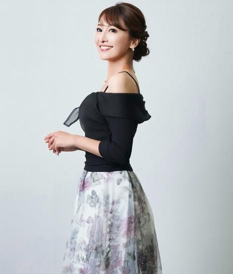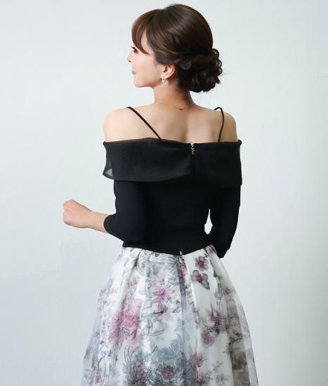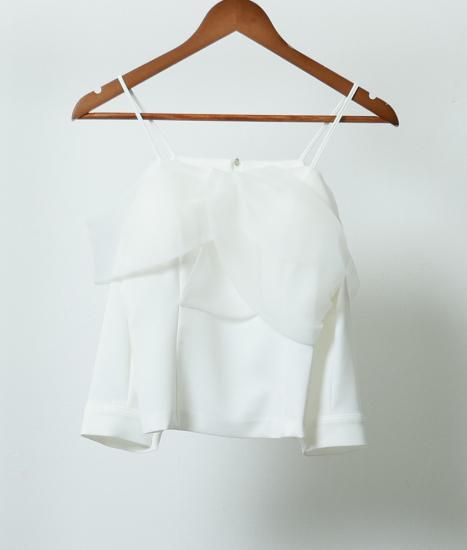 韓国製 | rinfarre | オフショルダー 肩紐 ホワイト ブラック ワンポイント リボンモチーフ 上品 ブラウス シンプル