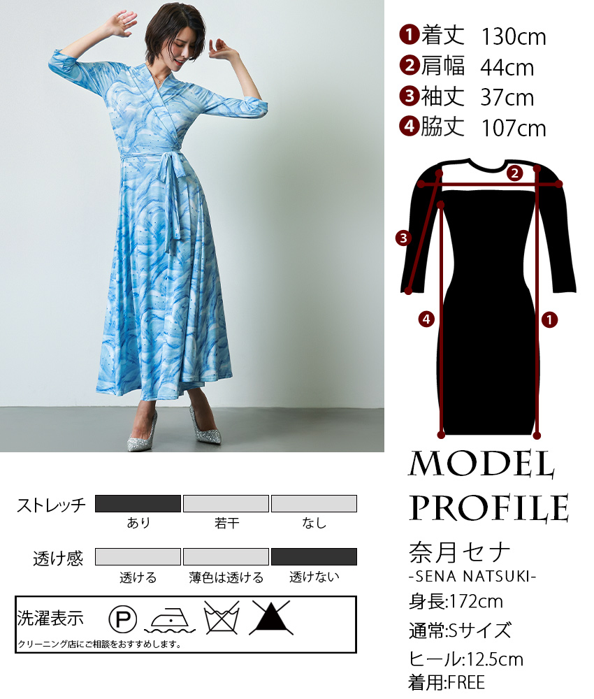 | おススメポイント | ・・rinfarre リンファーレコレクション・・ 七分袖のラップタイプ、マキシワンピース。 個性的な波柄が涼やかな印象を演出。 着心地抜群、人気のカシュクールデザインです♪ 普段のお出かけやリゾート、お食事にもOK! ※韓国製の人気ワンピースです。