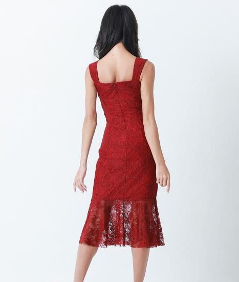 韓国製 | rinfarre | 総レース マーメイドライン ノースリーブ バーガンディー フレアヘム ミディアムドレス ワンピース mybd