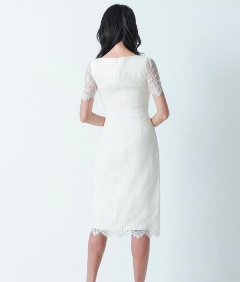 韓国製 | rinfarre | アイボリー 総レース 襟付き 半袖 ボタン タイト ミディアムドレス ワンピース myiv