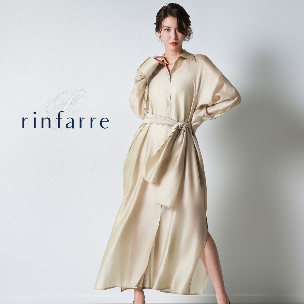 韓国製 フリーサイズ | rinfarre | ゴールド 襟付き ウエストリボン ボタン 長袖 マキシドレス ロング ワンピース