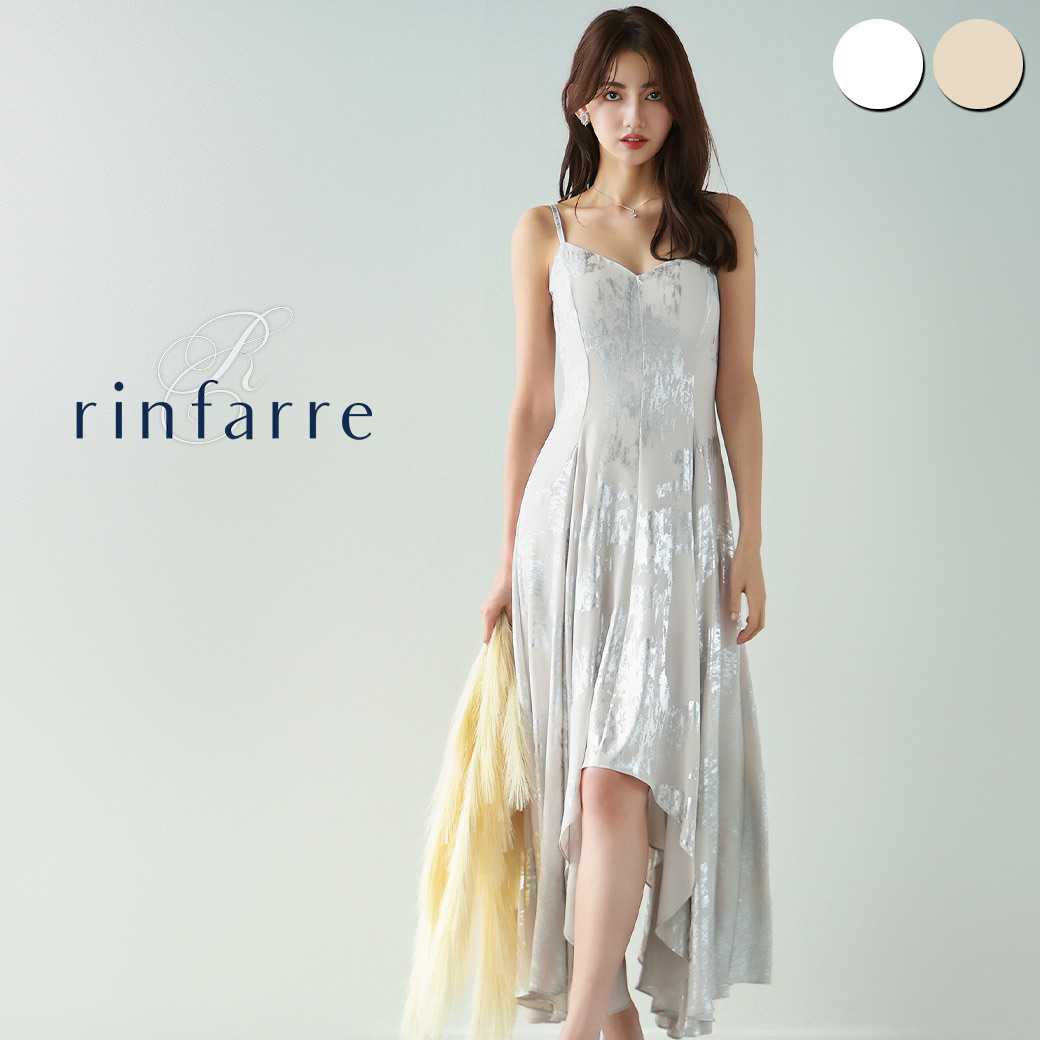韓国製 | rinfarre | シルバー ゴールド キャミソール メタリックマーブル ヘムデザイン ロングドレス ワンピース