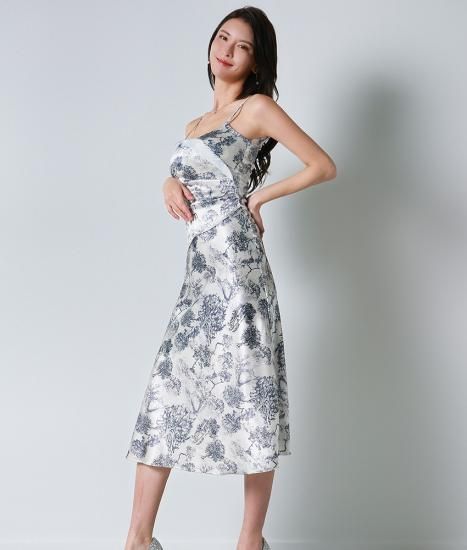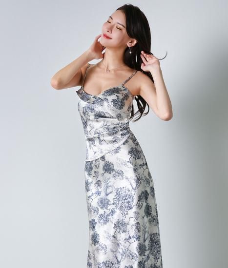 | おススメポイント | ・・rinfarre リンファーレコレクション・・ Aラインのミディアムドレスワンピース。 なめらかなサテンに、繊細なトワル柄プリントを重ねた一着。 上品さの中にほんのり色気を感じさせる、大人のドレスです。 お仕事用はもちろんパーティー等も♪ ※韓国製の人気ワンピースです。
