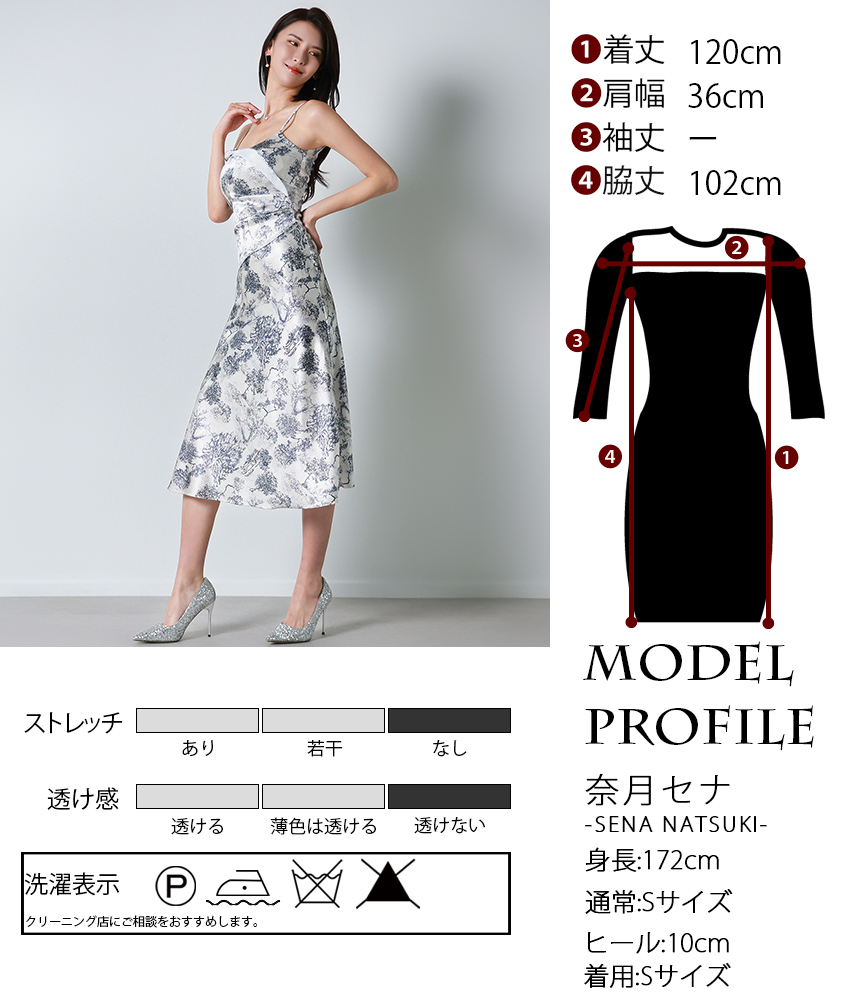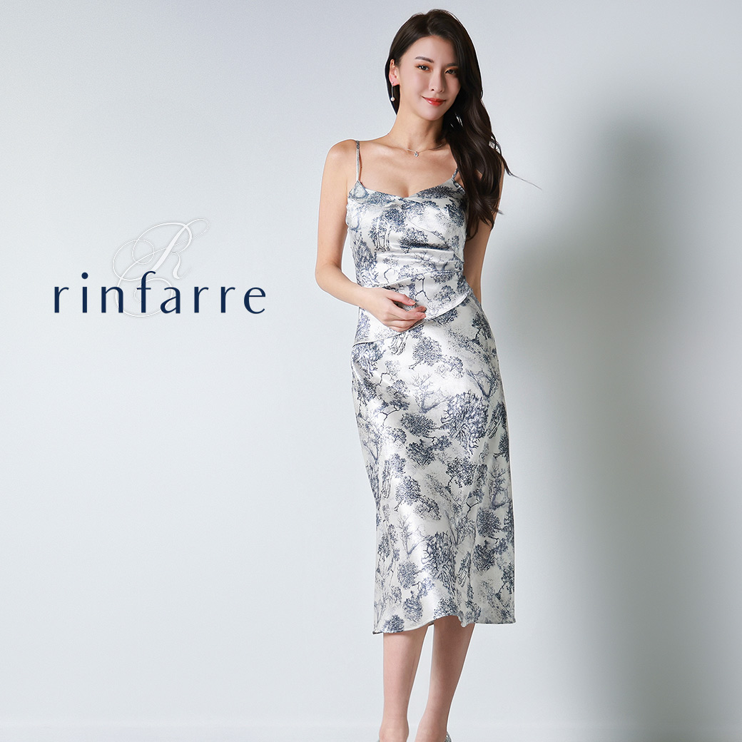 | おススメポイント | ・・rinfarre リンファーレコレクション・・ Aラインのミディアムドレスワンピース。 なめらかなサテンに、繊細なトワル柄プリントを重ねた一着。 上品さの中にほんのり色気を感じさせる、大人のドレスです。 お仕事用はもちろんパーティー等も♪ ※韓国製の人気ワンピースです。
