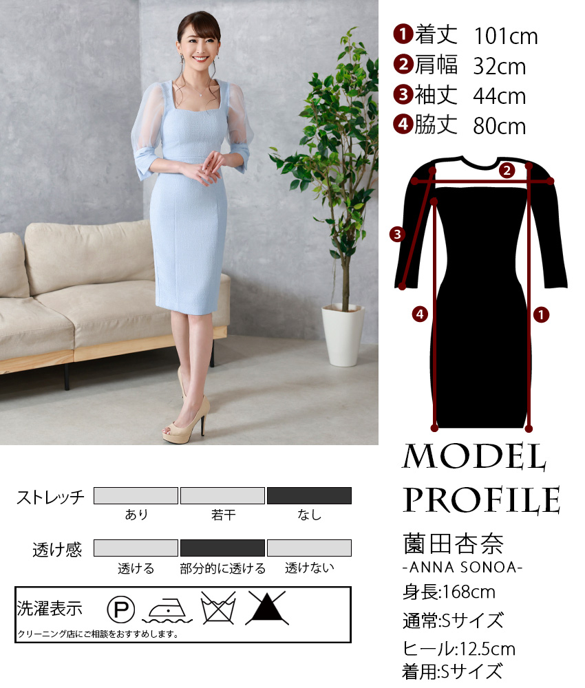 | おススメポイント | ・・rinfarre リンファーレコレクション・・ タイトラインのミディアムドレスワンピース。 ふんわりと透ける袖が、華やぎをプラス。 淡くやさしいアイスブルーで、甘すぎない大人フェミニンな一着。 お仕事用はもちろん、お食事やお出掛けにもOK! ※韓国製の人気ワンピースです。