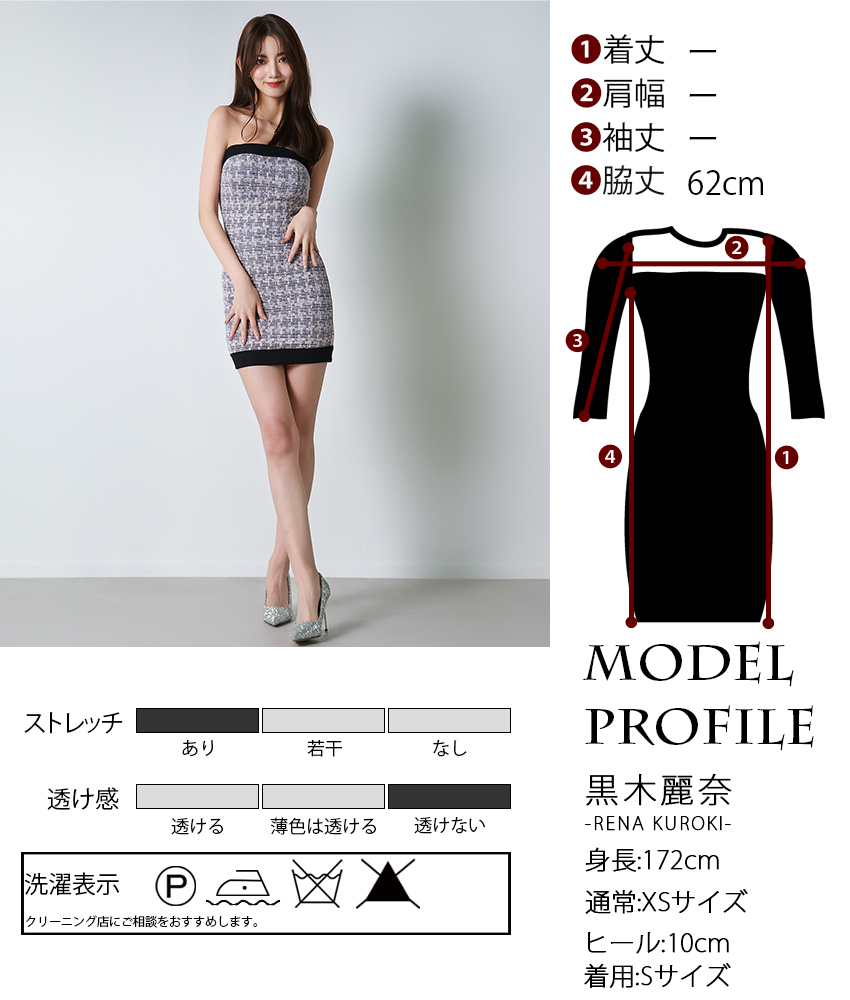 韓国製 | rinfarre | ツイード ミックスツイード ベアトップ ミニ丈 タイトミニ ドレス
